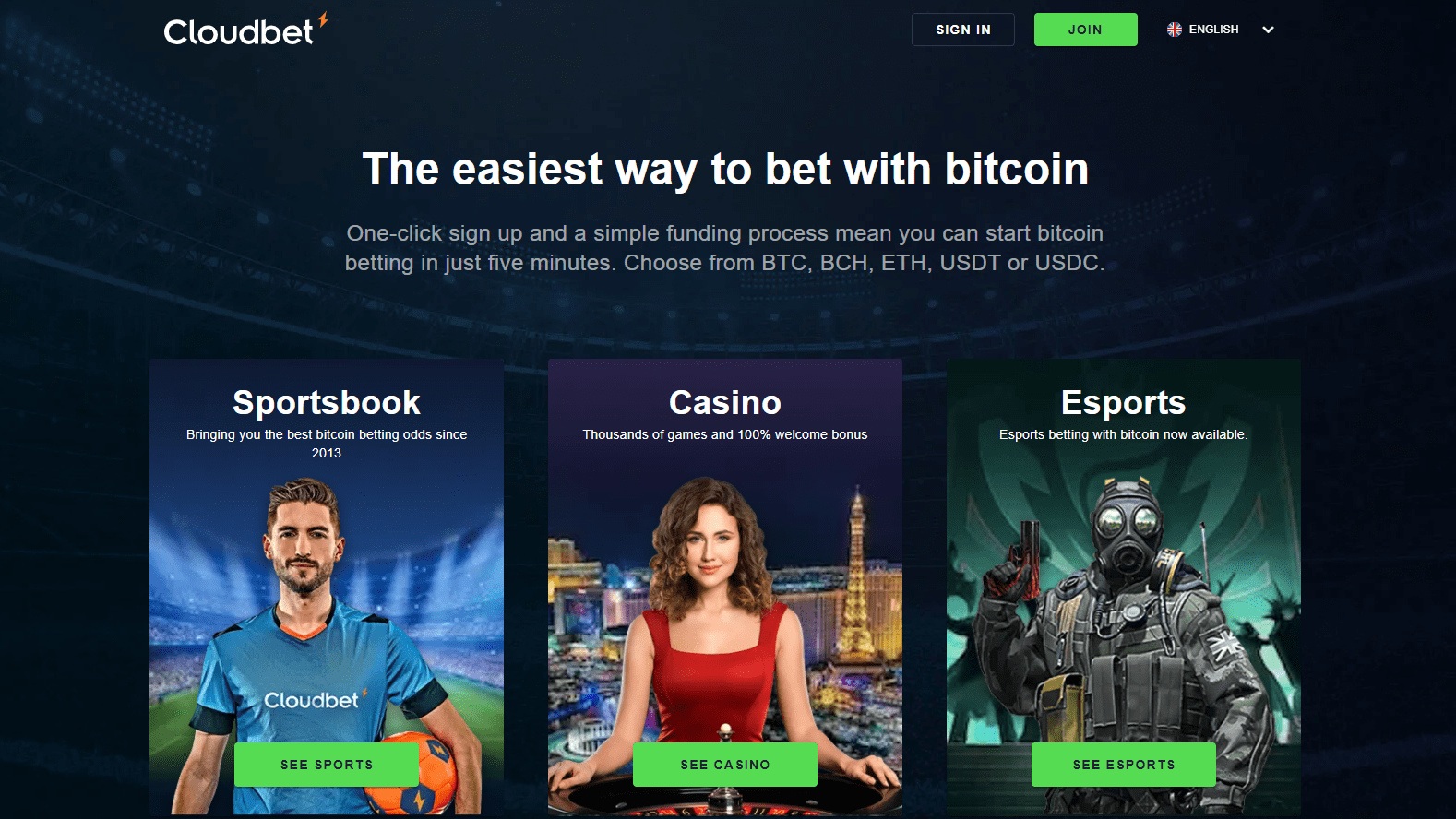 Accepted Currencies: Cloudbet supports a range of cryptos, including Bitcoin (BTC), Ethereum (ETH), Litecoin (LTC), Bitcoin Cash (BCH), and even some altcoins.