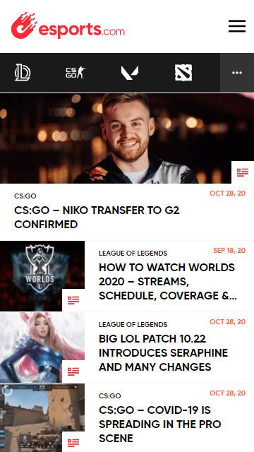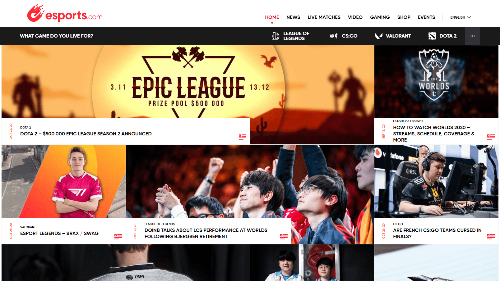 Great coverage of popular esports titles like Valorant, CS:GO, LoL, and Fortnite – easy to find your favorites.