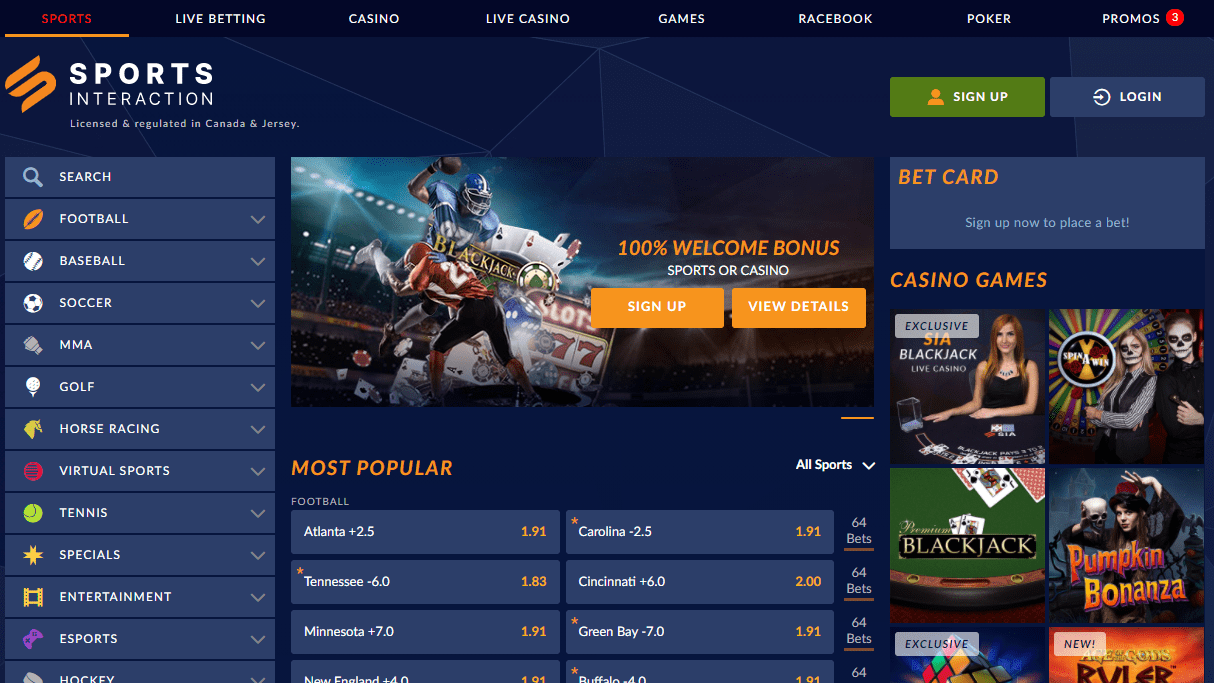 Unfortunately, there is not a whole lot that is known about this company. What is known, though, is that they have been in operation since 1997 and that they were founded and are based in Canada. Another thing that we know about Sports Interaction is that it was the very first gaming site to be licensed by the Kahnawakee Gaming Commission.