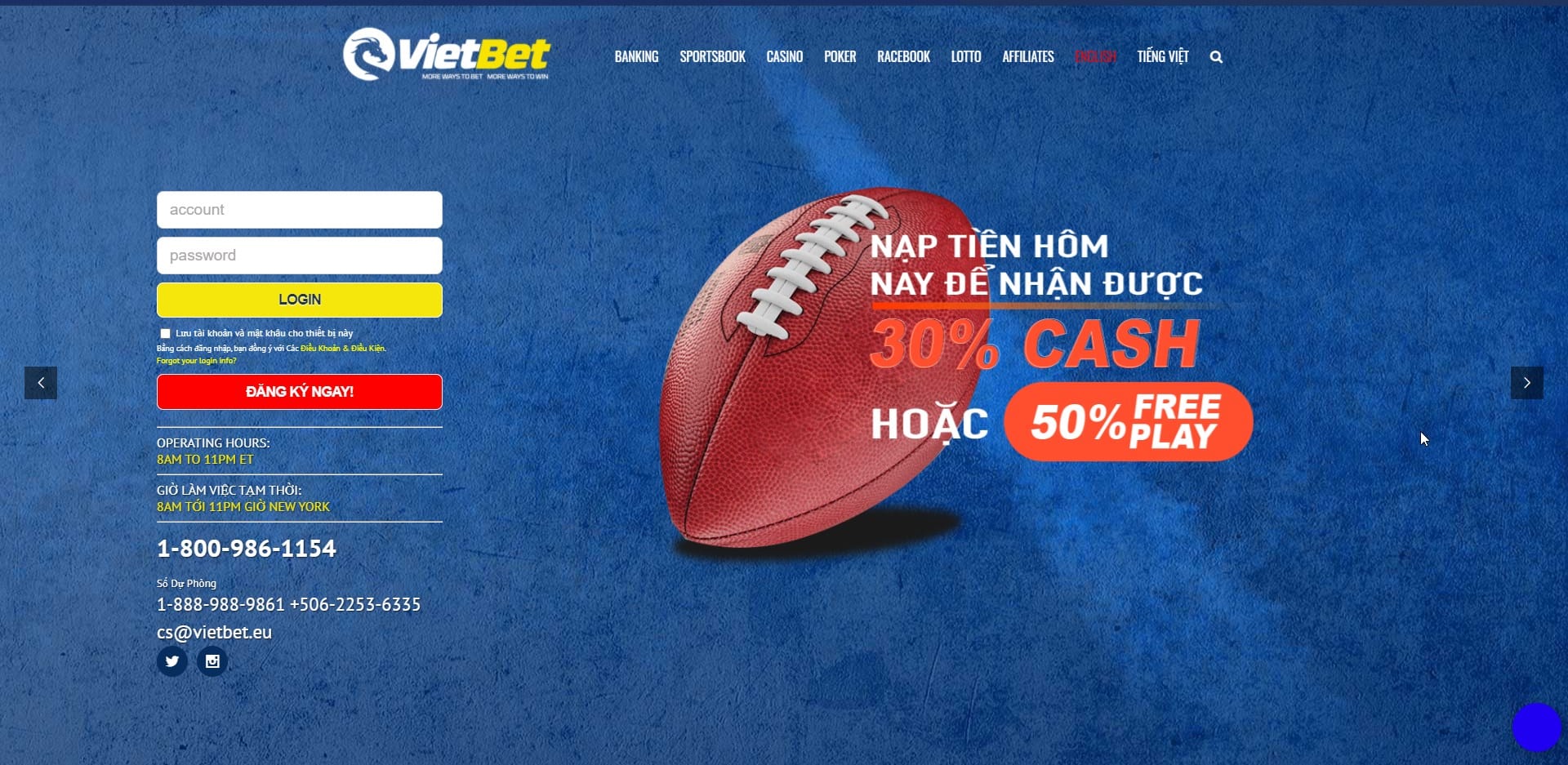 VietBet isn’t some overnight pop-up operation. It’s been around long enough to build credibility, which instantly sets it apart from sketchy, fly-by-night betting sites. Established in the mid-2000s, VietBet operates under the umbrella of the 5Dimes Group – a name that’s well-regarded in online gambling circles. They primarily cater to bettors in North America but have expanded to attract players globally.